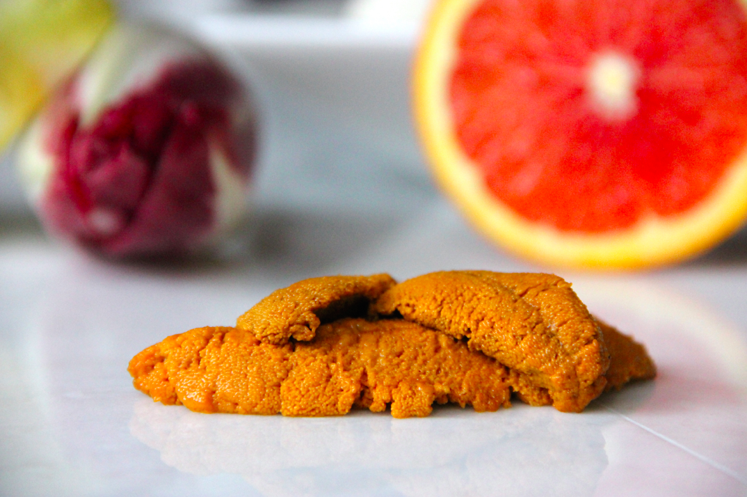 Both the uni and burrata’s creamy and slightly salty properties paired naturally with the sweet, tart flavor of the blood orange, and the endive provided a crisp, natural finish.