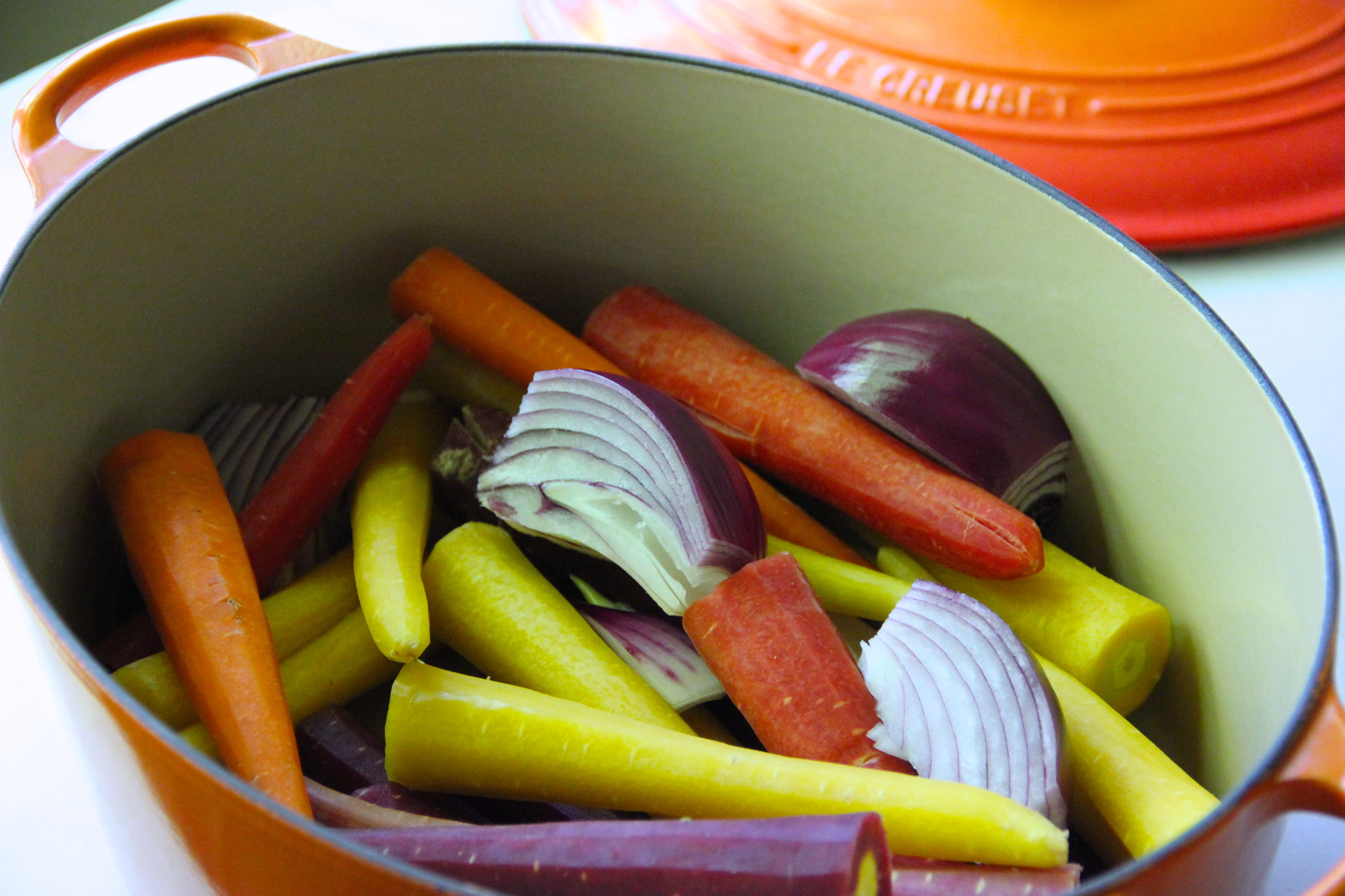 Although they weren’t on my list when browsing the produce section at the market a few weeks ago, I couldn’t pass on coming home with a couple of bunches of these beautiful multi-colored carrots. I honestly believe that the flavor and enjoyment derived from food is heightened when it’s colorful and aesthetically presented, and these were simply too gorgeous to pass up.