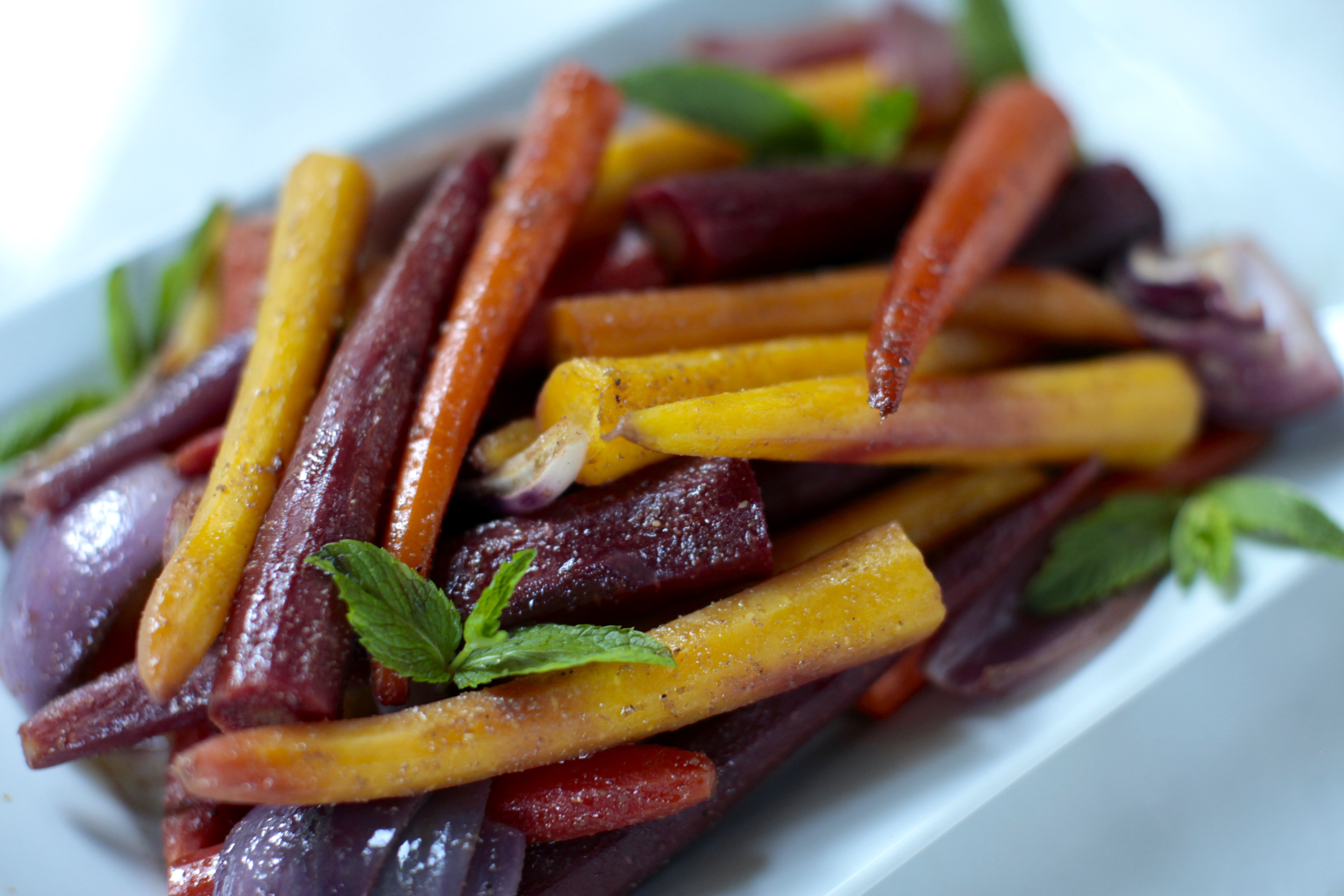 One of the reasons this recipe is a true winner is that it offers the perfect balance of savory and sweet. The carrots are roasted with a whole chopped onion, and tossed in an intoxicating mixture of vinegar, honey, olive oil, and spices. In addition to the dependable seasonings of salt and pepper, cumin adds a certain exotic essence that most definitely provides the “wow factor” of the dish.