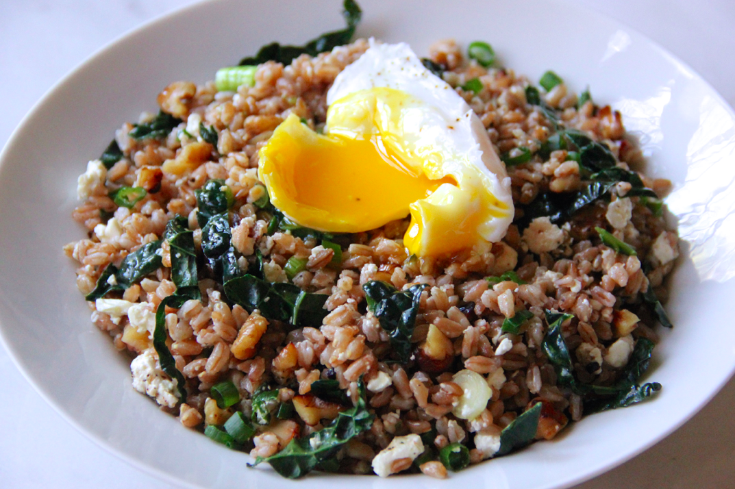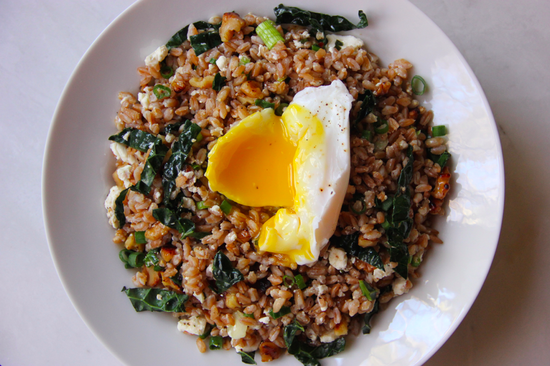 I’ve been battling cravings for Milo & Olive’s breakfast farro on and off since moving back to the Bay Area, and eventually decided to take a stab at it. I stayed true to Milo & Olive’s original recipe with ingredients such as kale, goat cheese and a poached egg, but had fun adding my own flavors such as toasted walnuts, green onion and mint. I also switched out the chicken egg with a poached duck egg, which adds an additional richness in both the flavor and consistency of the dish.